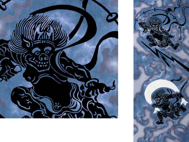 一対で取り上げられる自然神、風神雷神をモチーフにした手拭いです。