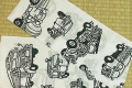昭和に活躍した懐かしい顔の車たちを並べた柄の手拭いです。