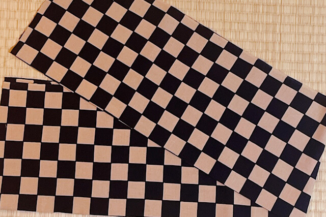 碁盤の目形に入れ違いに配色した柄で、チェッカー柄とも言われます。