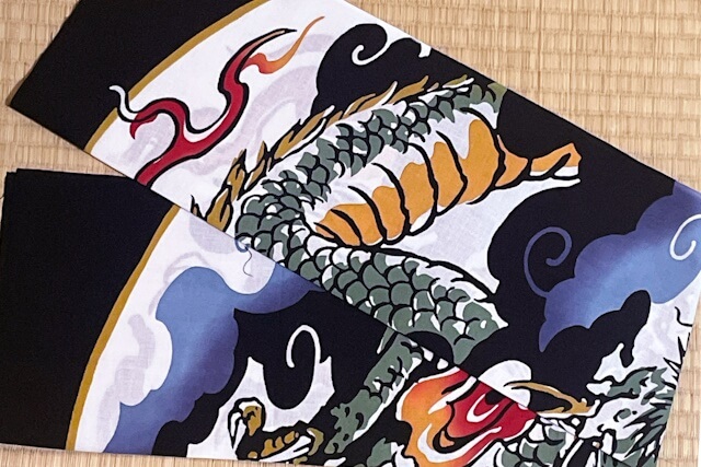 鳳・麟・亀と共に中国で四霊のひとつに数えられている、龍の手拭いです。
