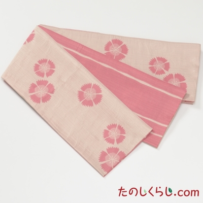 『桐生織 リバーシブルゆかた帯 ふくれ撫子 日本製』